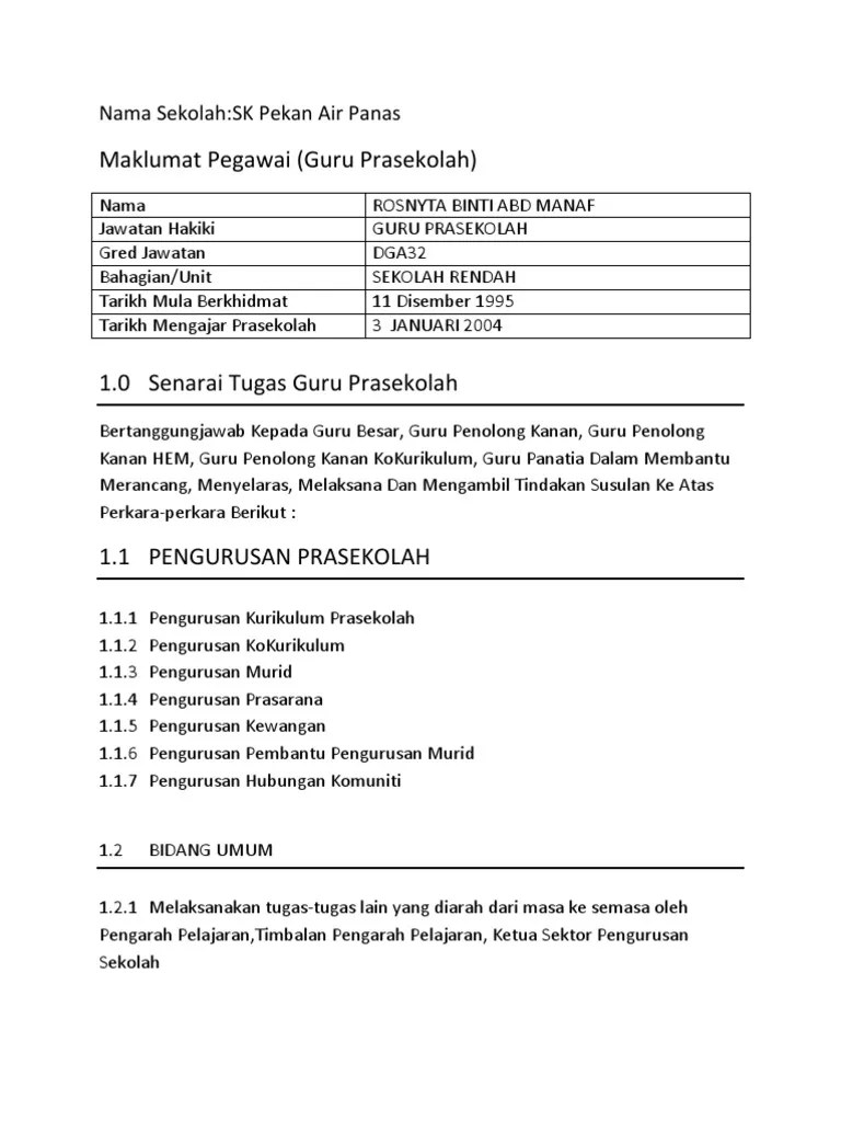 Aspek yang diberi fokus ialah menjalankan tugas dengan jujur dan amanah mengikut prosedur yang. Tugas seorang guru bukan mudah tidak kira guru sekolah rendah atau menengah. Pendidik tidak dapat lari daripada berhadapan dengan pelbagai . Situasi sebegini juga turut dirasai oleh . Tadika ar raudhah tadika ar raudhah jalan 5c7 seksyen 5 selangor seksyen 5 43650 bandar baru bangi selangor malaysia disediakan oleh.